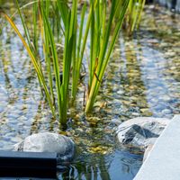 Andere bloeiende planten kunnen ook, maar wij adviseren een waterdiepte van 5–10 cm, eventueel door delen van de filterzone op te hogen.